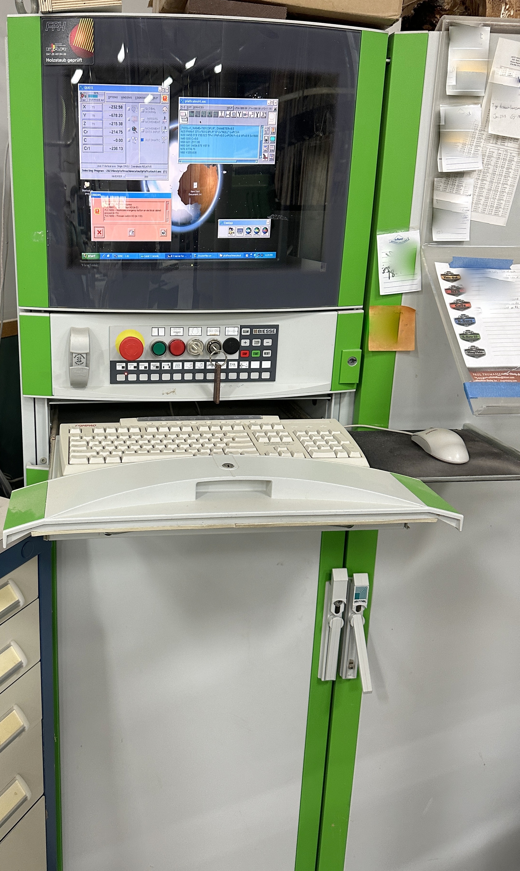 Biesse Rover 24 FT Router Series # 09665 Year: 2001 Power Supply: 20 KW, 480 V, 28 A., 60Hz., 110 24 Low Tensions Air supply: 7 minimum Bar Suction Air Speed: 30 M/1 Vacuum Pump Additional photos and details available Router is still hooked up and running. Price INCLUDES dismantling & loading! Freight rates are available upon request.
