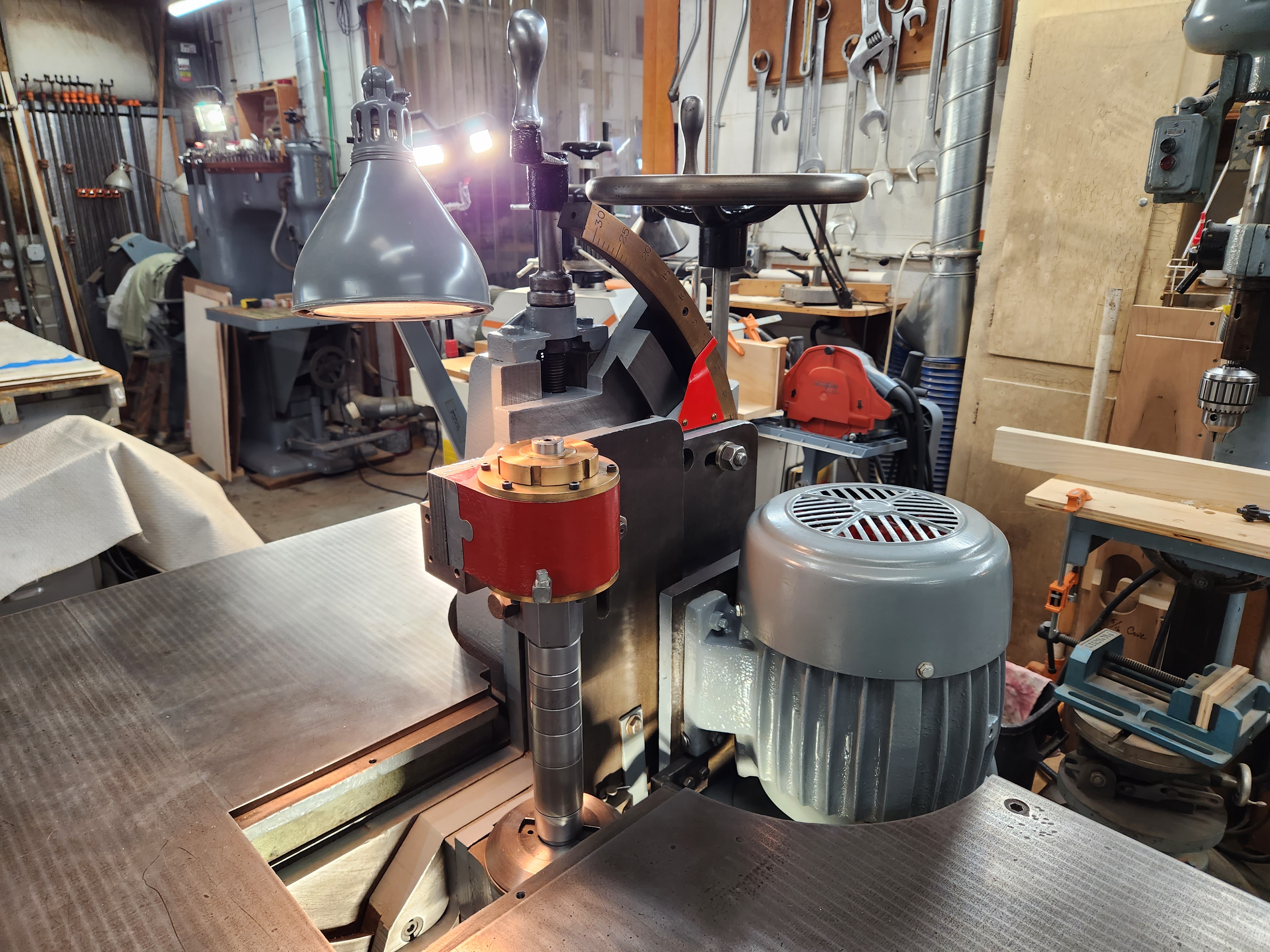 Orton Type "F" Ship Shaper/Router,40' x 60" Table Size, 7-1/2 hp, 230 Volts, 3 Phase, Oil Mist Lubrication. Excellent Condition. Machine has been Completely Rebuilt. Can be used as a Shaper or Router. Comes with a Mandrel with Top Bearing Attachment so Machine can be used as a Tilting Spindle Shaper. Can also be used as a Tilting Spindle Router with Collet Chuck Attachment with 1" HSS Spiral Cutter and Template Guide. Heavy duty Spindle with Brown and Sharpe #11 Tapered Socket in Spindle. Spindle was Indicated within 001". Spindle Tilts 30 degrees forward and 45 degrees backward. Great for Cutting Changing Bevels into Wood and Aluminum. This Shaper/Router has been operated in a One Man Shop who is now beginning to retire. This Machine is also highly used in the Maritime and Aerospace Industry. More Photos Available. Approx. weight 3000lbs. Awesome Machine!