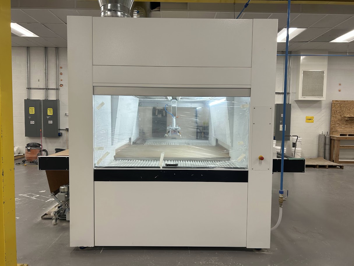 Dual Filtered Air and Frequency driven fans, keep pressurized spray cabin consistant for better uniformity in coating application.