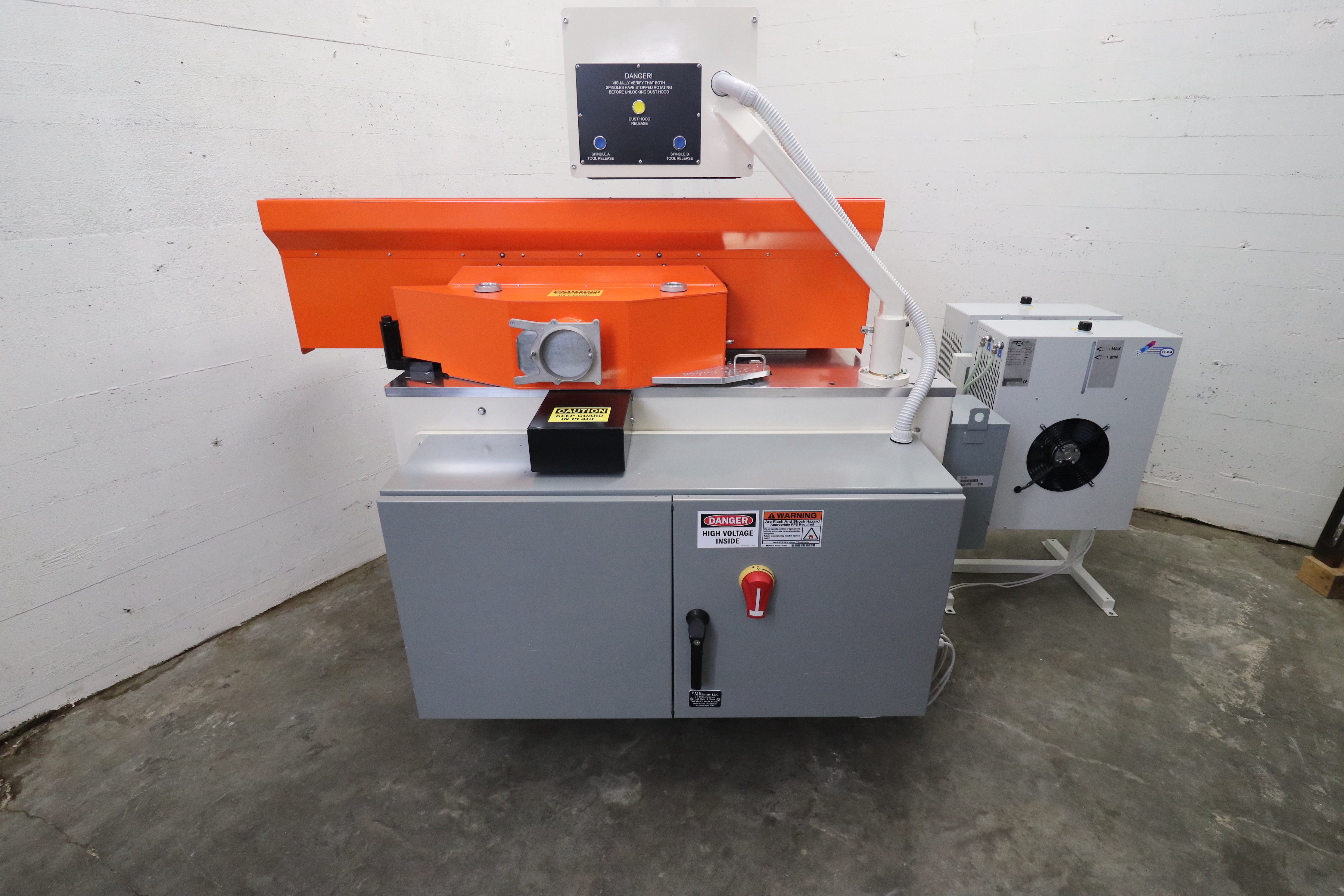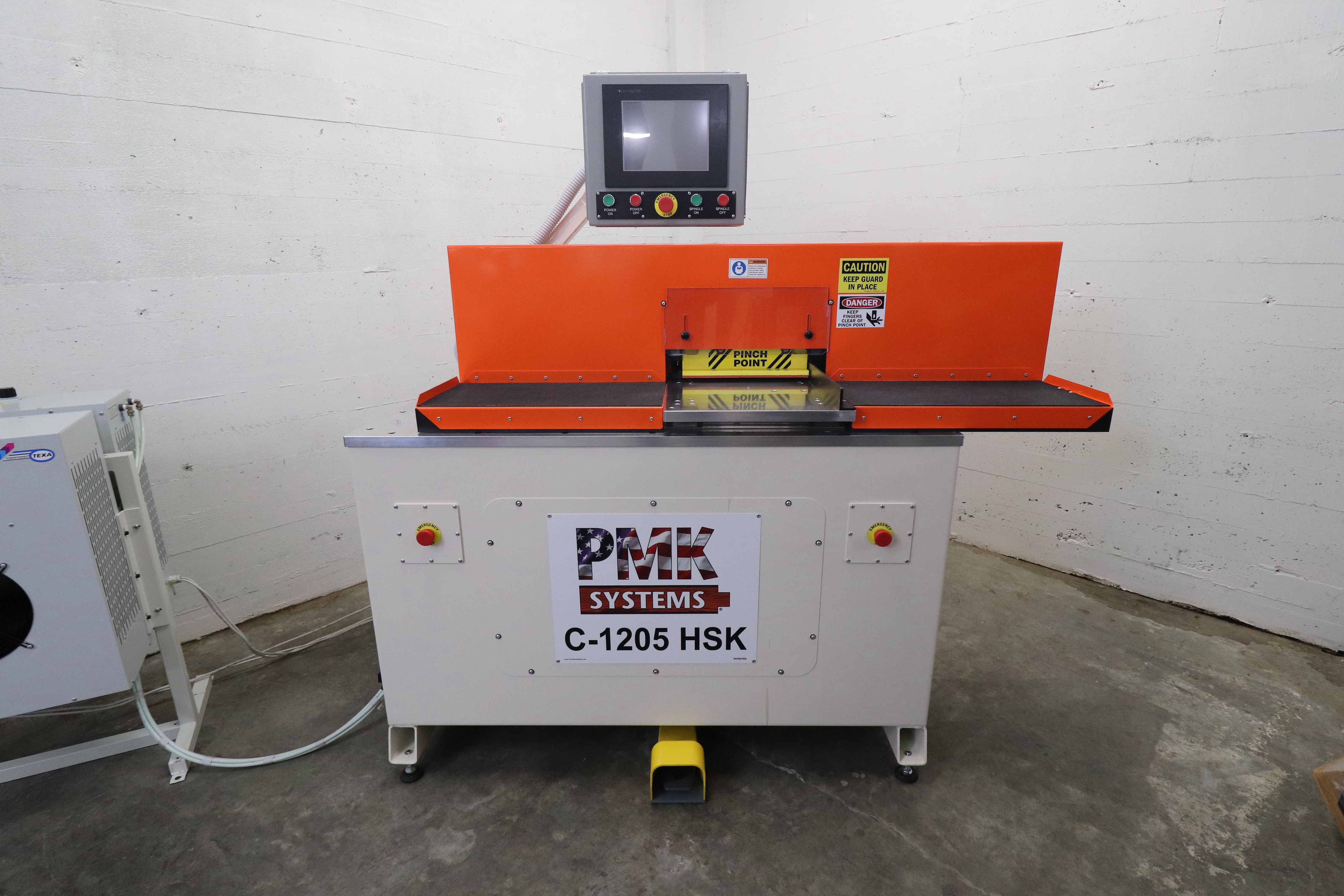 2018 PMK C-1205 HSK SERVO. Excellent condition with less than 1 hr total run time since new. The end matcher was custom made in the US by PMK for high end door manufacturer. It was purchased new for $130,000 in 2018. Exceptionally powerful with twin 16HP Italian made Electrospindle direct drive inverter controlled motors, for 32 combined HP. Each spindle is individually cooled by a TEXA forced air chiller. Spindles feature HSK quick release 1-1/4" collets for quick tool changes. Both spindle motors and the chiller are Italian made. Build date of the end matcher is 6/2018. Included are two Lietz insert cutter heads. The machine is currently under power and can be demonstrated M-F 15 mins North of downtown Seattle. More photos and info coming.