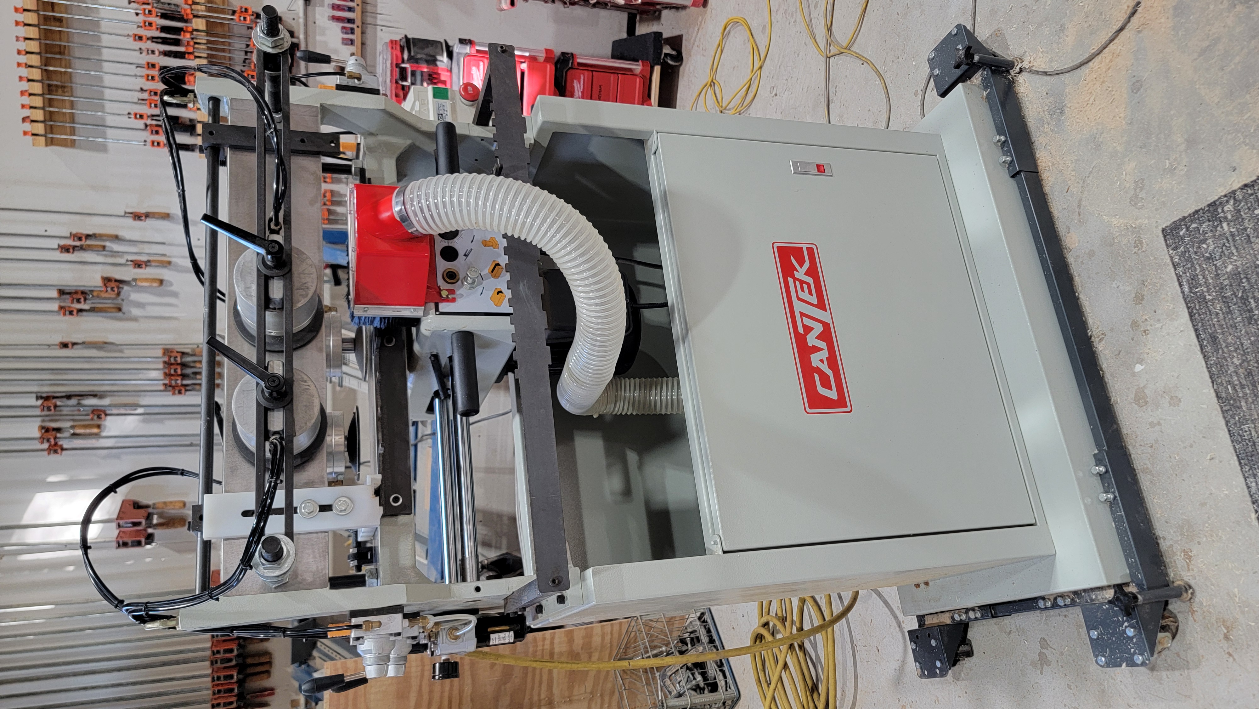 For sale is a cantek jdt-65 dovetail machine. Used only twice setting it up, but otherwise new (I purchased it myself new). It's been in storage since, as I had to move shops after getting it and can't keep it. Other than a bit dusty, it's new. It's on a rolling stand, has cutter, and included accessories that come with it- bars for doing other size dovetails, some tools- what's shown in photos. It's in a warehouse in new orleans. Buyer will have to arrange to pick it up. If you want it shipped, you'll have to make arrangements for shipping company to collect it and crate it.