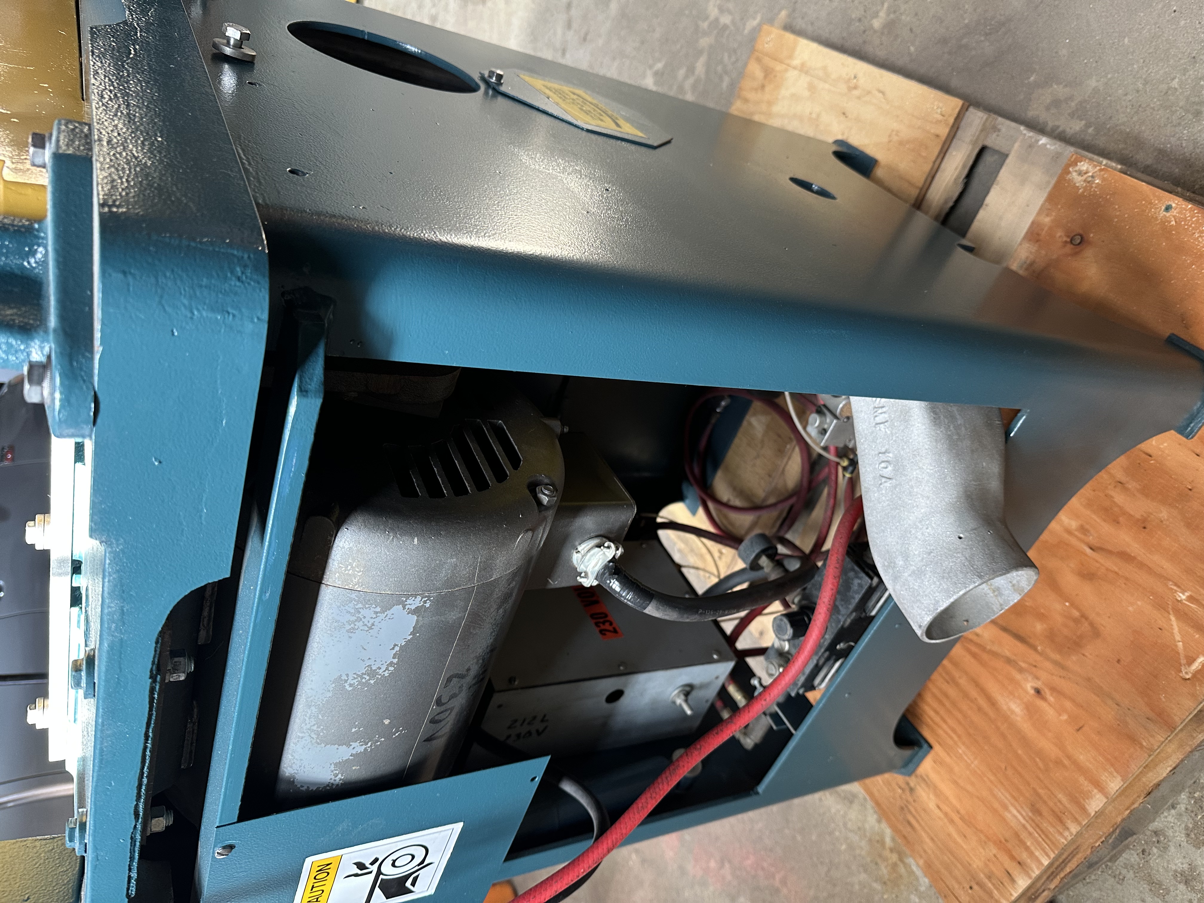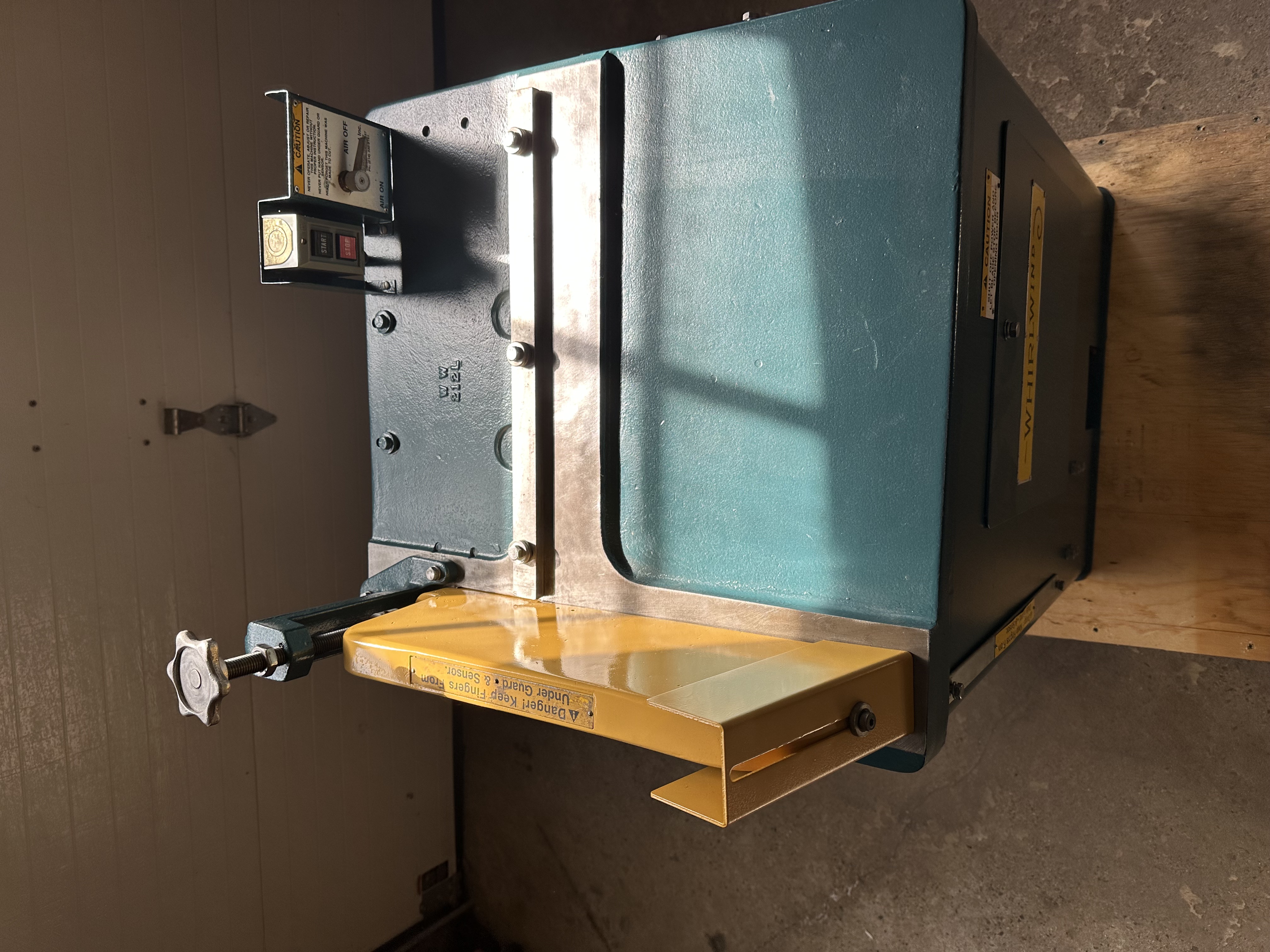 Whirlwind upcut saw with left sided blade. 18" blade with 1" dia arbor. 10hp Baldor 3ph motor 208-230/460. Pneumatic cycle activation with foot pedal control. Material Capacity: 4″ x 10″, 2″ x 12″ to 1″ x 13″ . This saw comes with factory in-feed and out-feed roller tables, 2 blades and a phase converter installed to run on single phase power if needed. I can palletize properly for shipping and load.