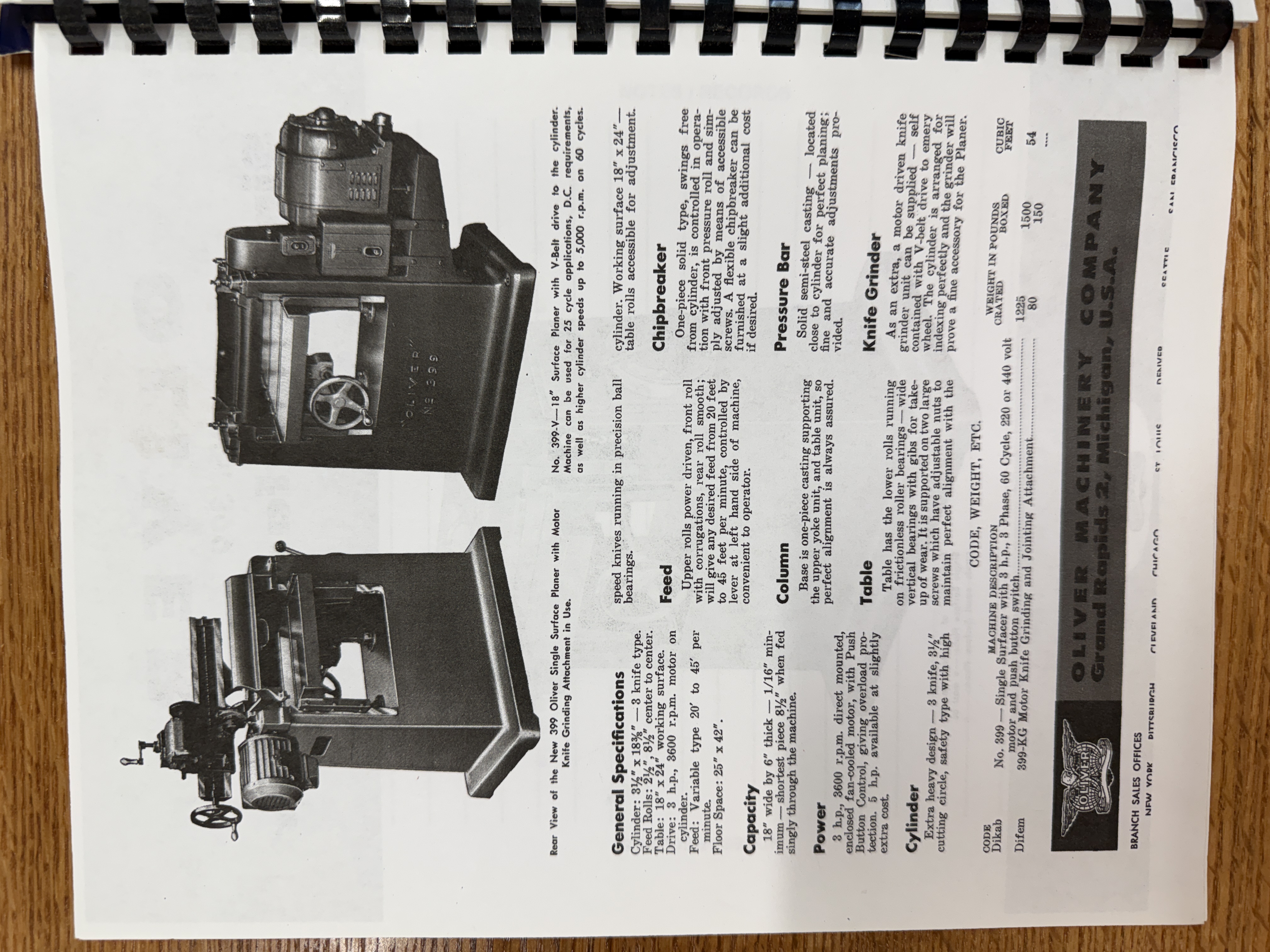 Used Oliver 399D planer in excellent working condition. 18" x 24" working surface. New bearings, new knives, and new motor starter were installed in Summer 2023 by RT Machinery, Hughesville, PA. Originally from a school; I am at least its third owner. It is a great machine that I have used for more than a decade but I now have upgraded to a larger planer.