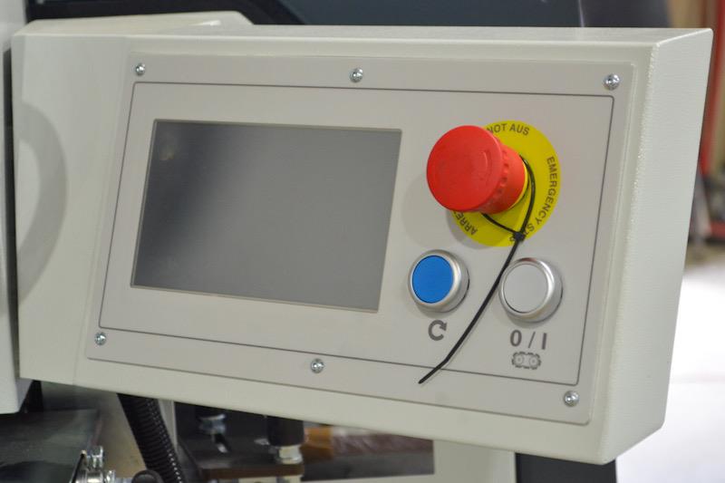 Corner Rounding Unit, with 0.22 kW (1/3 HP) - 12,000 RPM - 200 Hz Motor, 50 mm (1.97”) Diamond cutterheads, 50 mm (1.97”) Vertical/Horizontal copiers for profiling straight, curved, & beveled edges, & PLC-selectable front, rear, or complete panel processing.