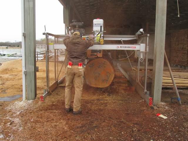 There should be a "lead" adjustment for the vertical cut which for Lucas is adjusted to "zero". Saw blade marks on the log, after a thin cut, should show equal marks from the front and back of blade (cross hatching). Same for the horizontal cut.
