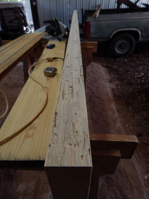 I am a bit stumped as I did not think this was suppose to happen in dry wood. In 2011 there was a fire in the area that killed the tops of some local Loblolly pine--I milled 50 logs and put most in my new home. The wood was milled and kiln dried within two to three months of the fire. I had an 18" wide by 2" thick board stored in my shed that I just got out to make a table top with. The wood looks great but when I straightlined it to glue up--taking about a 1/4" off an edge, the wood is all worm eaten. The trails range from about 1/16" to 1/4" and I found one of the critters which is about 1" long and now dead(: The trails seem to stay at least 1/16" from the edges so there is no outward sign of the activity
