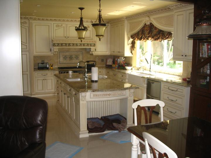 Well here I am again. LOL. Here to please the eyes of my fellow woodwebers. LOL. This kitchen was designed and painted by others. We did all the cabinetry in my shop, made all the arched doors, etc. The cabinets are beaded. Drawers are dovetailed. We purchased the drawers through the Wood Connection. (I recommend them so look them up. Bobby is a member here as well). All the carved work is from Pearlworks and is resin not wood. We installed the cabs unfinished and the painter painted them onsite. We did the rest of the house also, but I failed to get good pictures. I am trying to get some through the designer. Anyhow, enjoy.