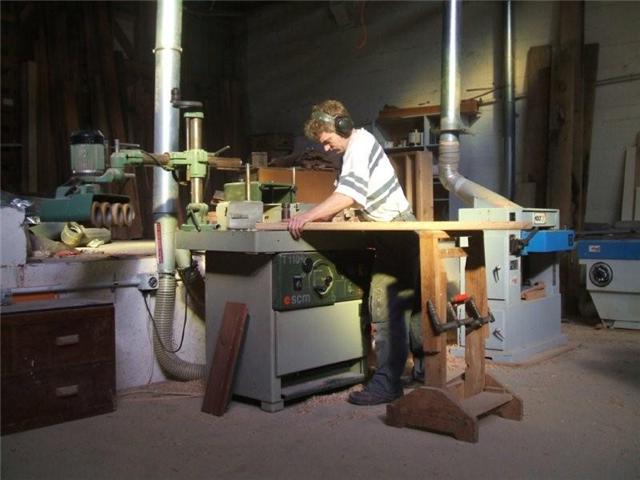 Legs cut with appropiate bevels and grooved to take the veneered sides