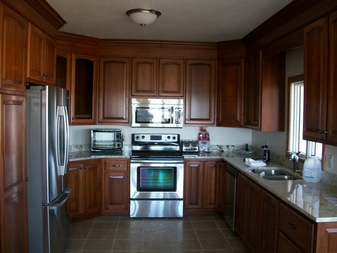 This was a small kitchen with double stack crown to the 9' ceilings. All cabinets are usable and no filler or square boxes in the corners.