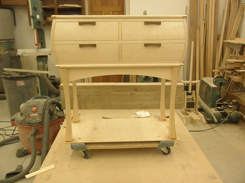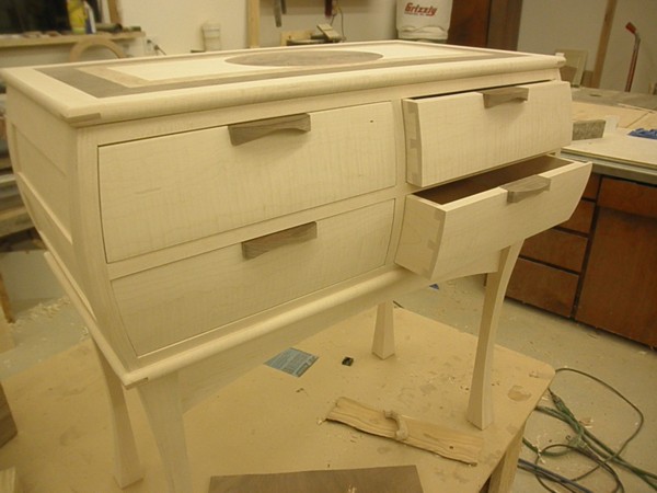 I like the natural colors of real wood. I've got about eight coats of lacquer and then buffed it with 0000 steel wool for a deep soft luster and the figured grain really pops in the natual maple. Some prefer blondes, and some prefer brunettes. I quess it's the same with wood. I wanted this cabinet to be a light color. Tim, your'e not being harsh just calling at as you see it but I do not agree with you. One of my favorite things about this design is the way the top and bottom curves flow togehter into an "S" curve. The varied opinions just reminds us that taste is subjective.