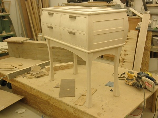 Very nice workmanship. I agree with the one comment regarding the color, maybe it looks better in person, but to me you lose the figure with that light of a color. From a design standpoint  when looking from the front is that the upper bulge of the sides don't really tie in well with the curve of the legs,hope I am not being too harsh, overall I give it an A.