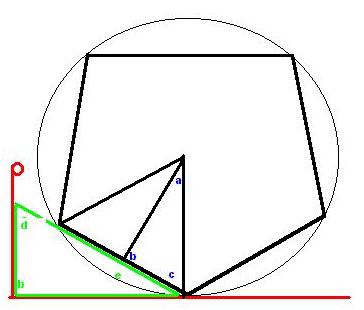 Glad that you got the right angle for a Pentagon as 36 and not 18 degrees. Now can you make an image for the top of the ridge where the bottom has 90 degrees and the top has 22.5 degrees. It can be cut the same with wedges or by drawing lines and cutting if you just have one.