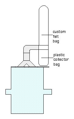 I am trying to conserve space in my shop. I have a 42 inch wide, 2 head widebelt sander. It currently has a dedicated 5hp dust collector that barely keeps up. On other machines in the past, I have been successful with custom made fabric filter bags (from American Felt and Fabric). The airflow is so much improved with felt bags over cloth that it effectively seems to double the size of the dust collector. My new shop has really tall ceilings. I was thinking to mount the widebelt collector on top of the machine. This would produce a very short pipe run. Other than the weight of the dust bag, does anybody see any flaws to this idea?