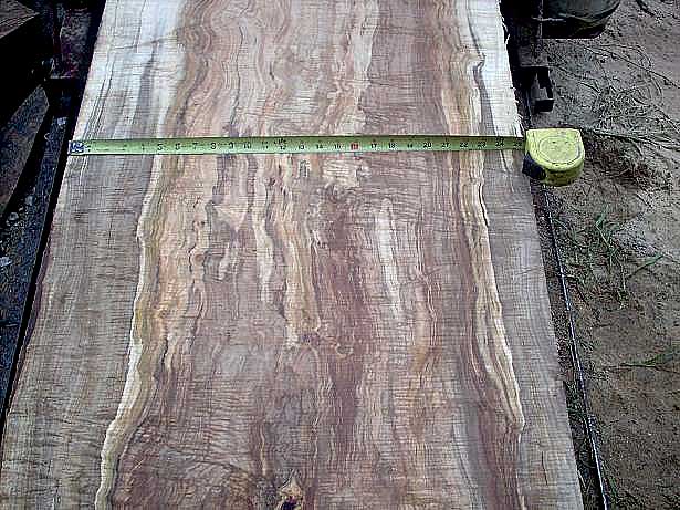 I finally got the sides squared up from all my chainsaw butchering. I flipped it up to clean the wide face and to start sawing 27" wide slabs. The first cut was had more junk. Then I dug it out, dropped the saw 1/2", and hit the 4th and final piece.