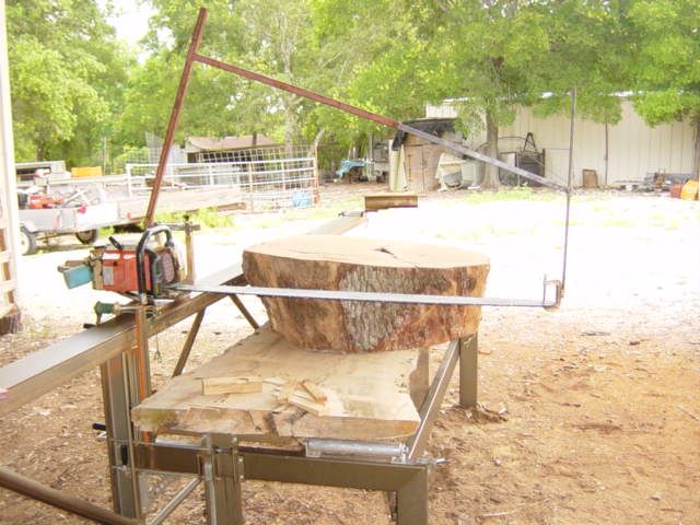 I guess looks are deceiving then. It cut very well and is very stable. The long bar droops about 6" and above the c-clamp on the bar tip is an all thread rod that I adjust to pick the tip up and level it out. I got four 50"x 42" slabs out of the block on the mill. The first cut took the uneven part off the top. Live oak is a white oak and the saw handled it very well.