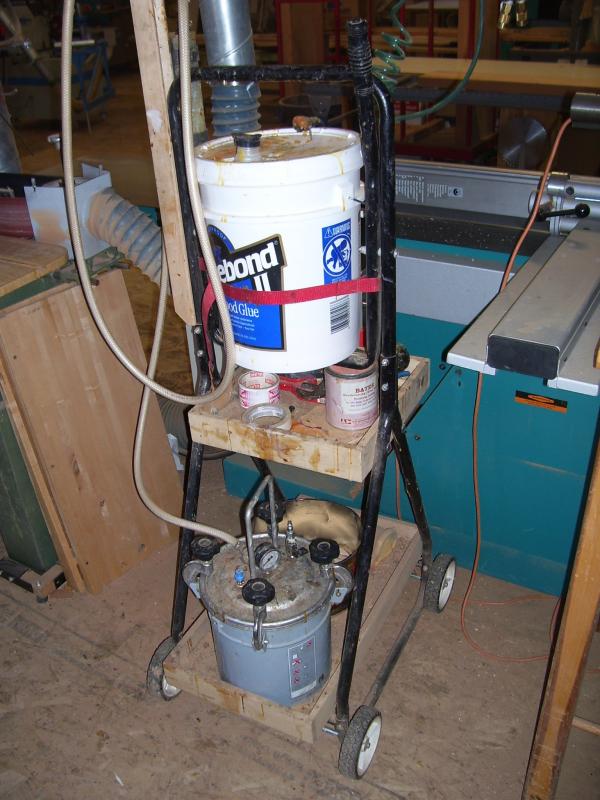 I have some more questions about pressurized glue pots. I have an opportunity to buy a used glue pot from a fellow who closed his shop down. He bought it from the people who sold him his HESS clamp. I have it at my shop right now but have not yet put any glue in it. I did charge it with air and this is what we have observed: