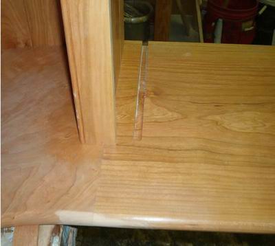 The End Panel bottom is shown here leaning against the top. It has been dadoed to accept the 1/2" spline on the countertop.