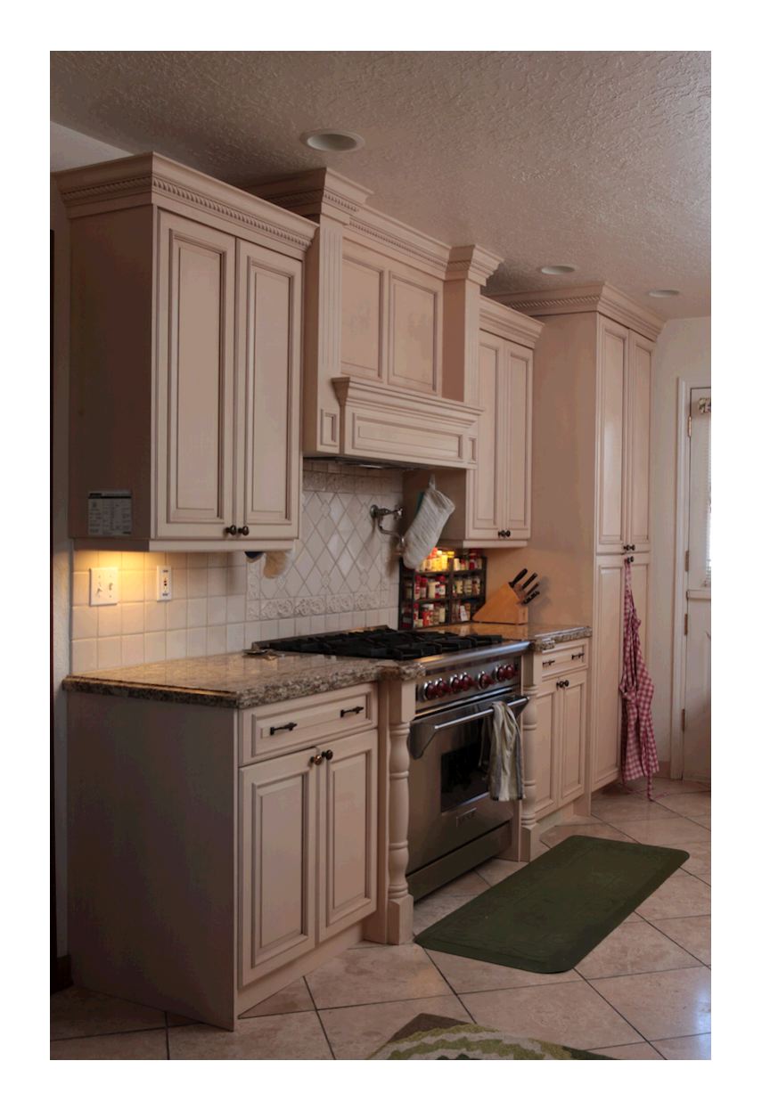 I like to get them at least 30. Some people like to get them lower for better exaust, but in my way of thinking, steam or smoke is going to rise so the fan is going to suck it out. Assuming that the cfm is adequate for the amount of ducting. My concern is the depth. Typical range hood units are around 18" deep. Range around 25. In the pic posted above the cabinets beside the range has posts, which I have done also with cooktop cabinets. This sets the burners out even farther. So the hood is only covering the back burners. How can any hood exaust the steam, smoke, etc, when the hood doesn't cover it? Then again, if it were deeper and covered the burners well, then every time you cook you've got a range hood right at your nose?