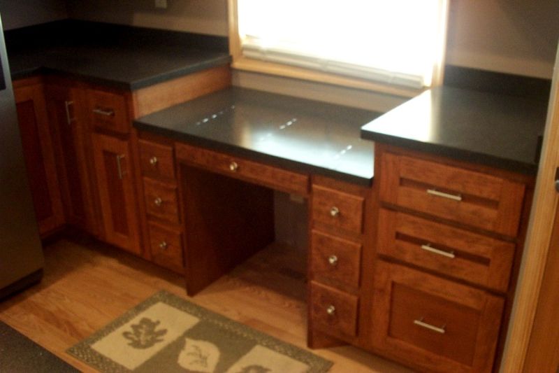 Example of how my face frames go to the floor. I put a 45 degree piece joining the face frame to the toe kick. It looks good and the women like it because it is easy to sweep out from under the cabinet - no blind corners for the dust to hide in.
