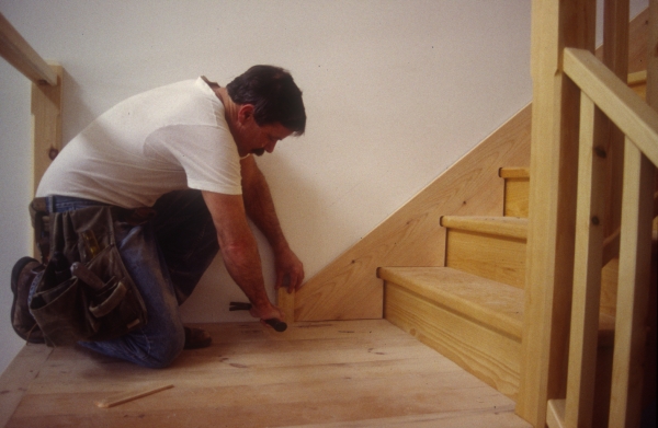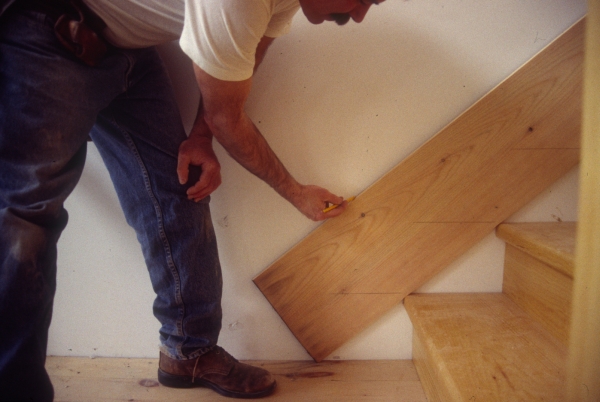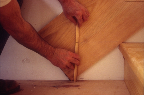The photos and descriptions that follow are based on a stair skirt I scribed about 20 years ago. The process is pretty straightforward, and the captions associated with the photos pretty much tell the story. I've included additional comments and observations at the end of the article.